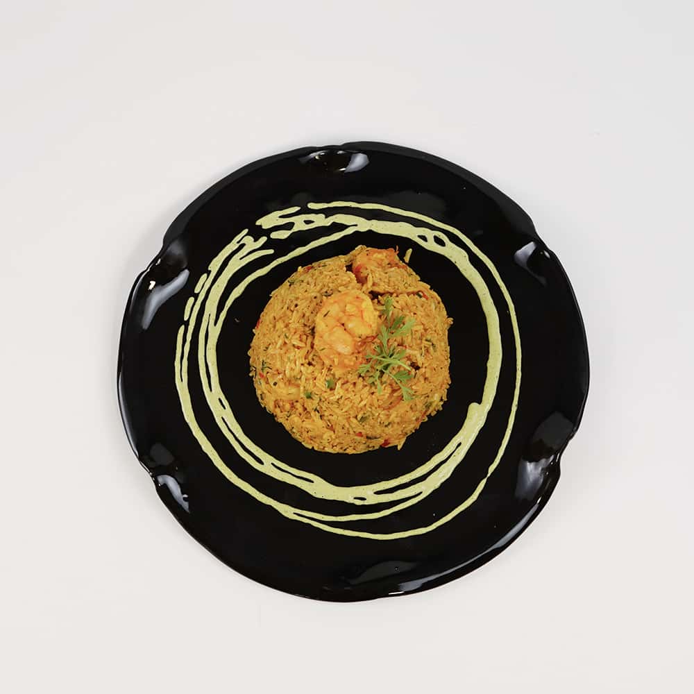 Mezcle el refrito y los camarones con el arroz una vez listo.