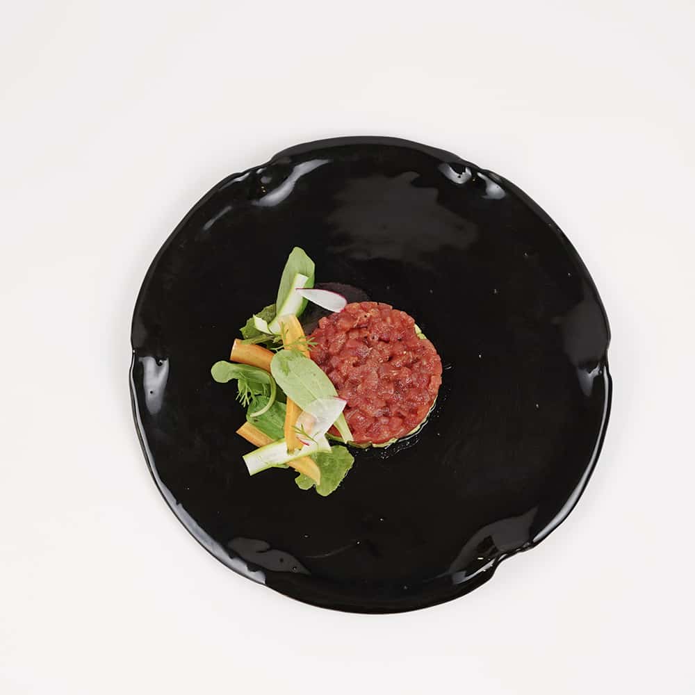 Cuando el atún haya reposado lo suficiente, ya puedes directamente emplatar tu tartar.